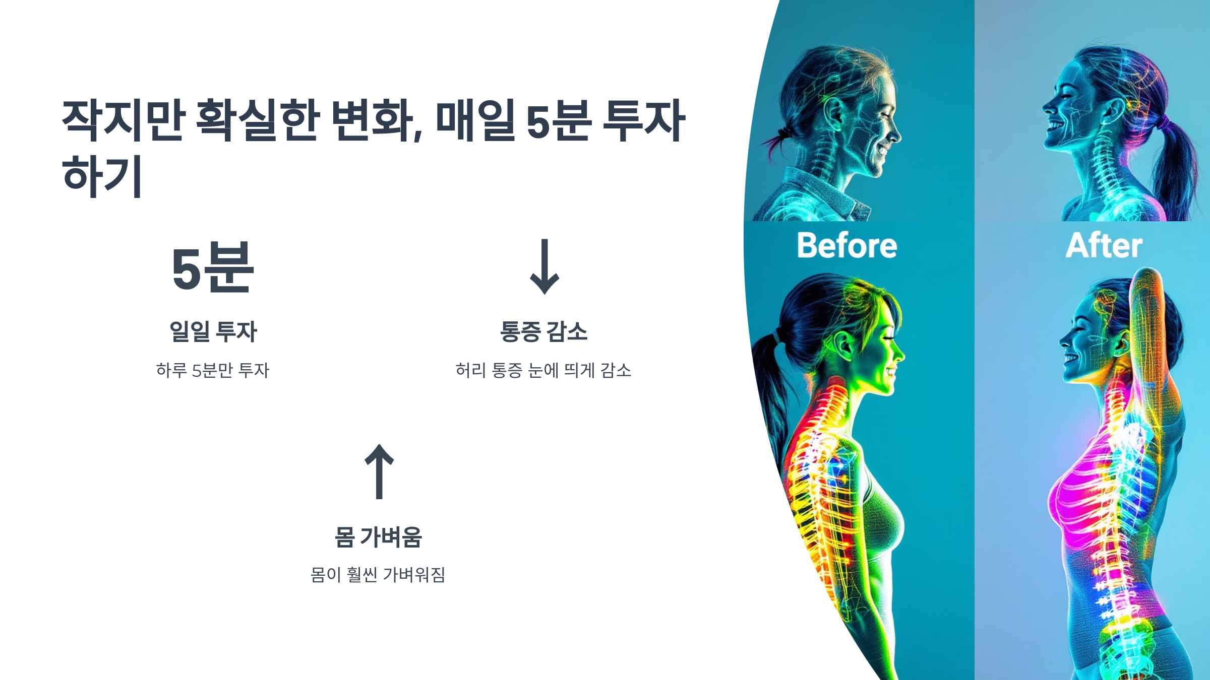 하루에 5분만 투자해도 몸이 훨씬 가벼워지고, 허리 통증도 눈에 띄게 줄어들어요! 저도 처음엔 귀찮아서 안 했는데, 막상 하고 나면 시원한 느낌에 "왜 이제야 했지?" 싶더라구요. 😊