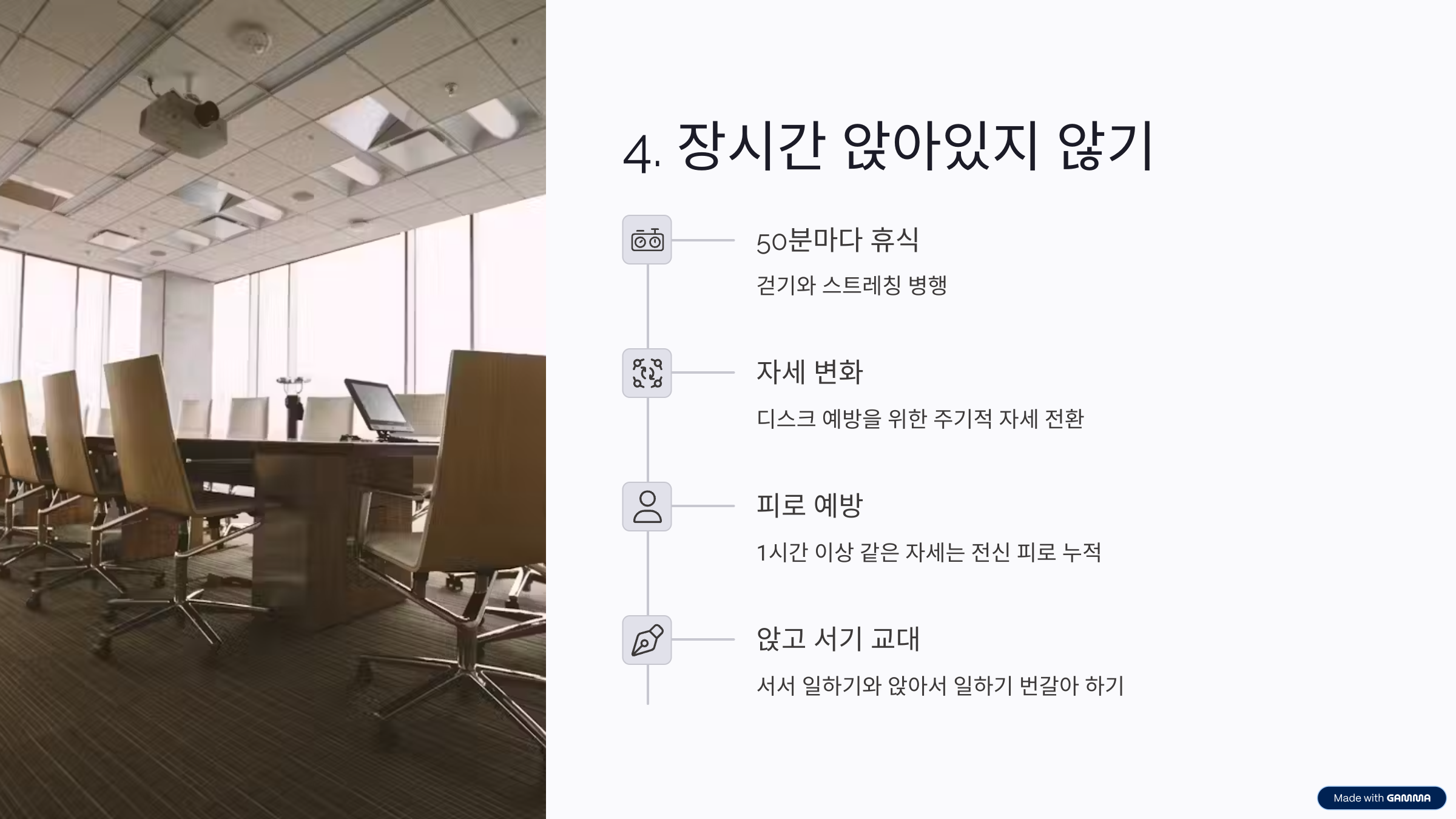 하루 종일 책상 앞에서 일하다 보면 어느새 3시간, 4시간이 훌쩍 지나가죠. 😵 장시간 앉아 있는 건 척추 건강에 정말 치명적이에요. 허리에 무리가 가면서 디스크 문제까지 생길 수 있어요.