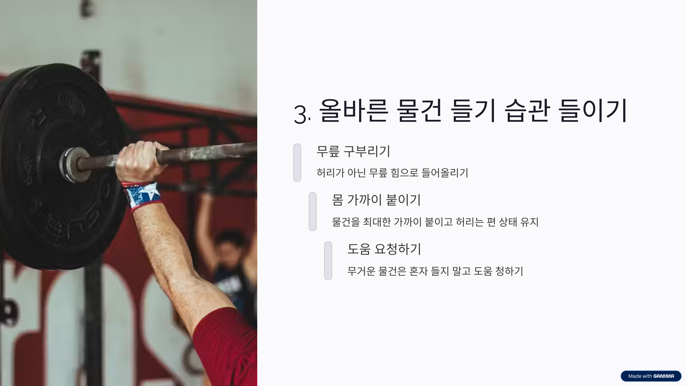 무거운 물건 들 때 허리를 바로 굽히는 습관, 혹시 아직도 하시나요? 🚫 이렇게 하면 허리에 바로 큰 부담이 갑니다. 물건을 들 땐 무릎을 굽히고, 허리는 곧게 세운 상태에서 하체의 힘으로 들어올려야 해요!