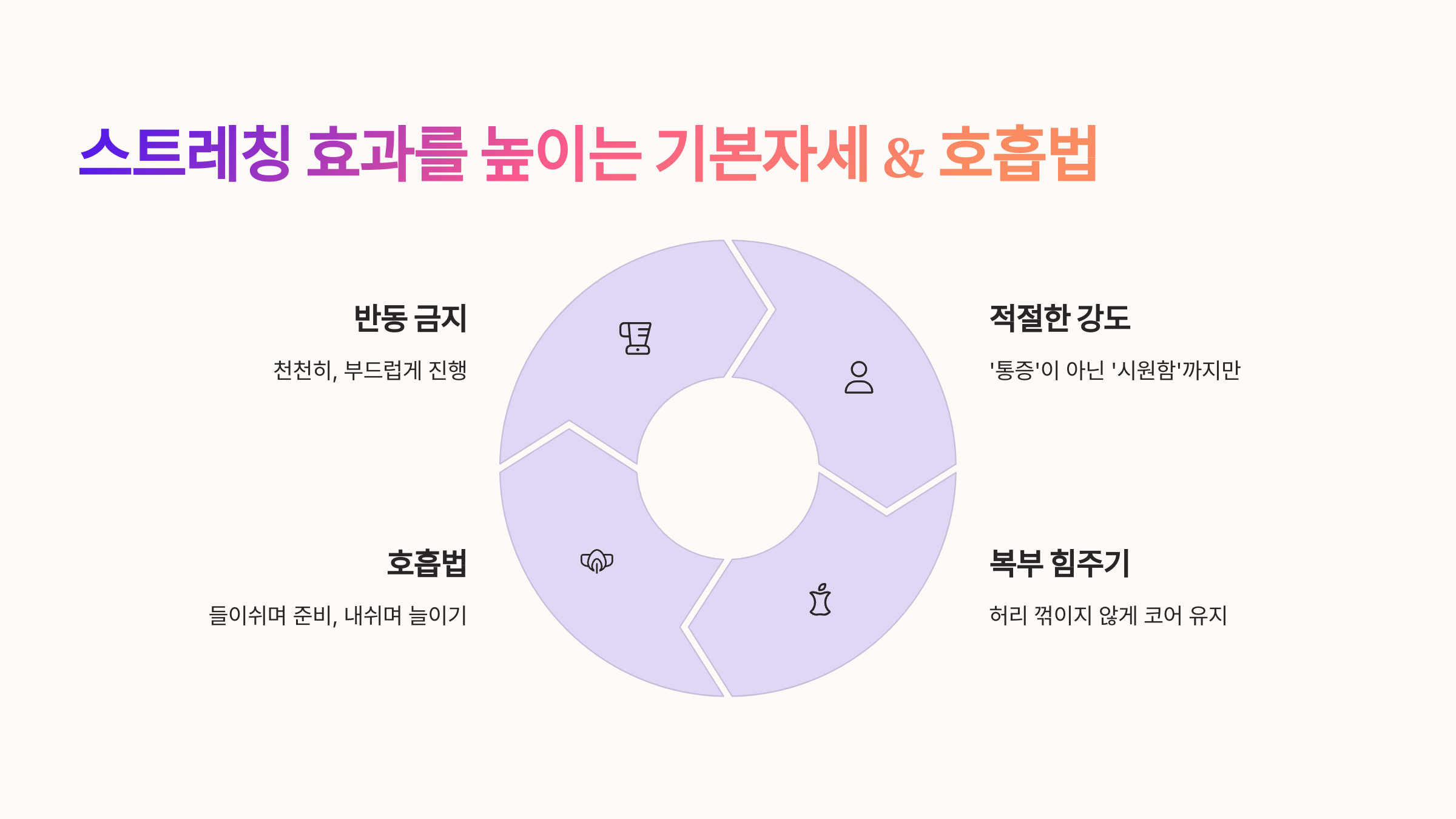 이 네 가지만 기억하면 스트레칭 효과는 확실히 올라갑니다.