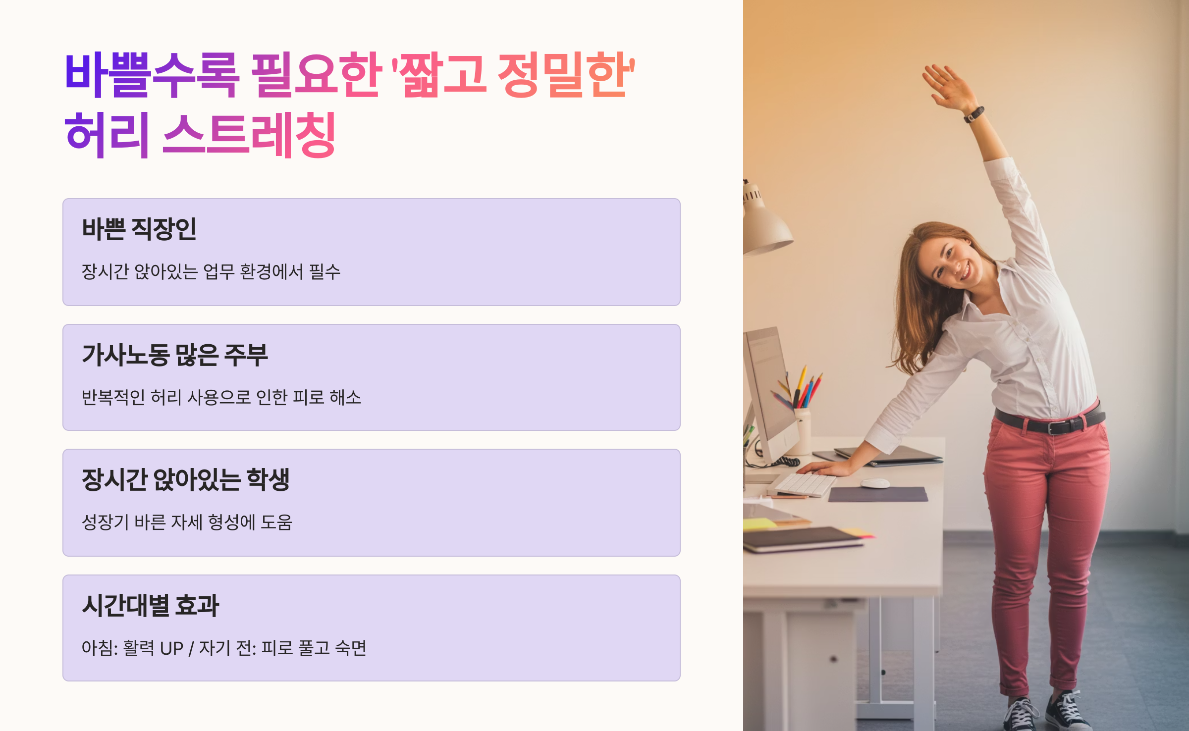 🧘 바쁠수록 필요한 ‘짧고 정밀한’ 허리 스트레칭
