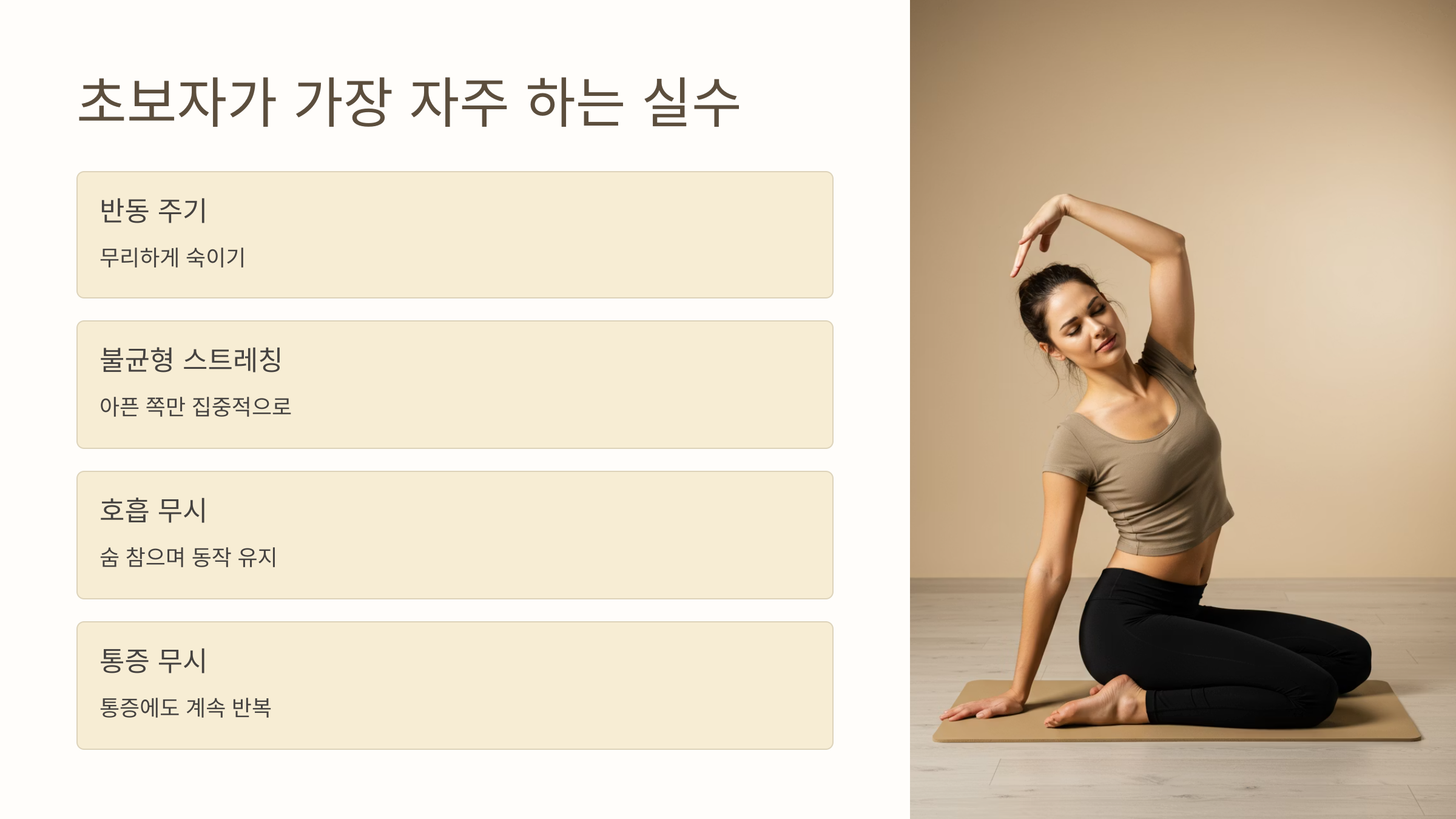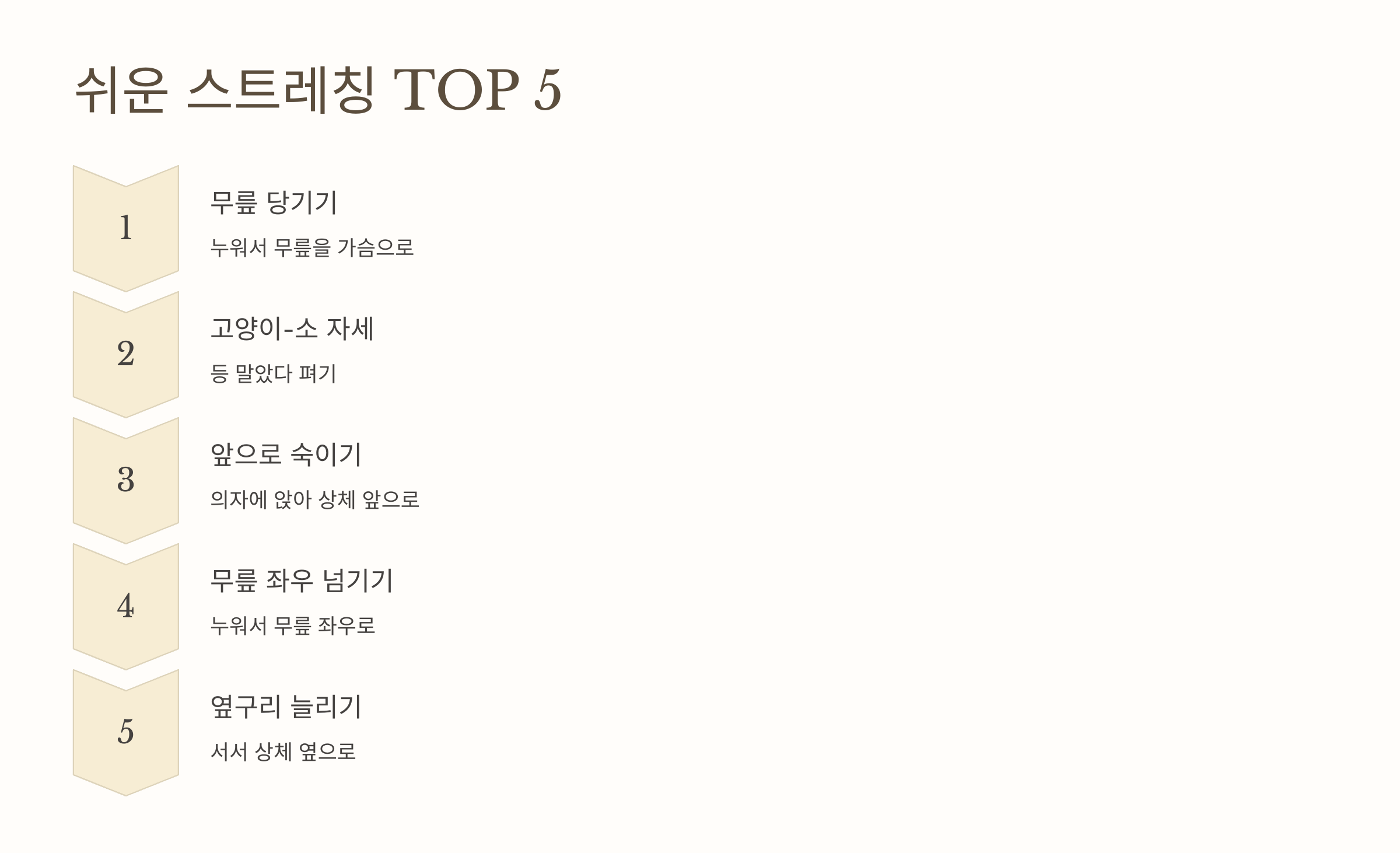 👉 스트레칭은 편안한 범위 내에서만! ‘시원하다’는 느낌이 들면 충분합니다.