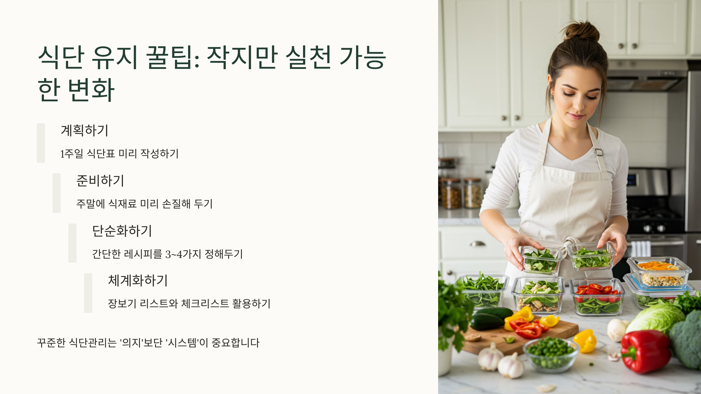꾸준한 식단관리는 ‘의지’보단 ‘시스템’이 중요합니다.