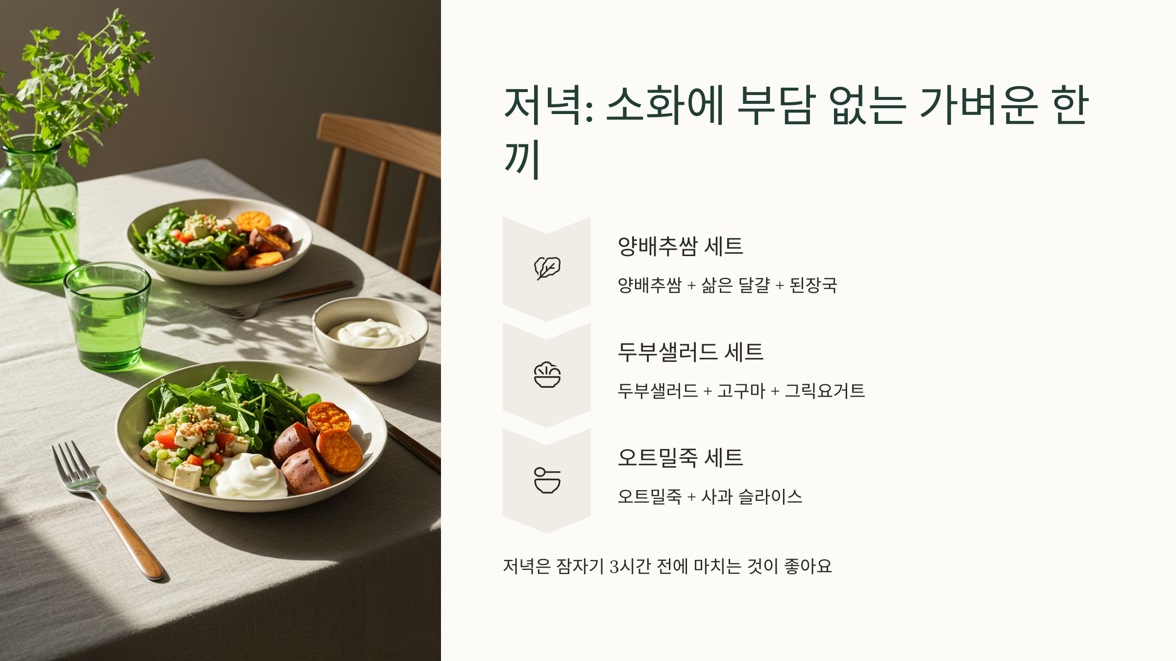 🌙 저녁: 소화에 부담 없는 가벼운 한 끼