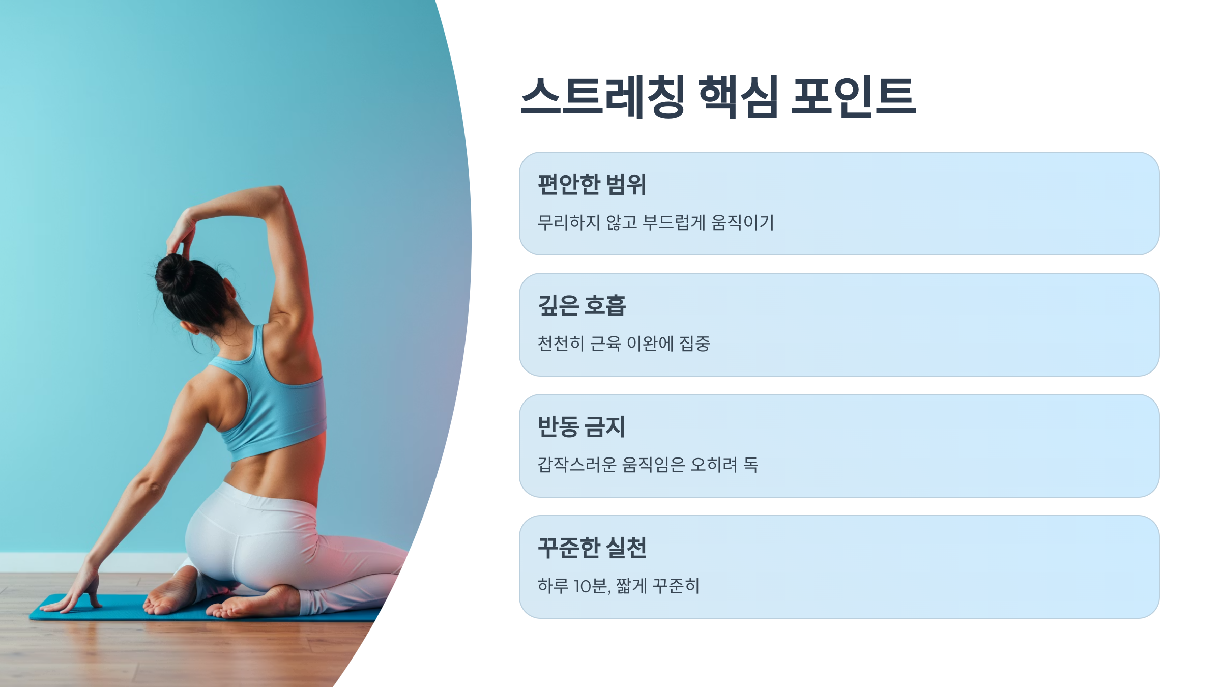 ✔️ 무리하지 않고 ‘편안한 범위’에서 부드럽게 움직이기